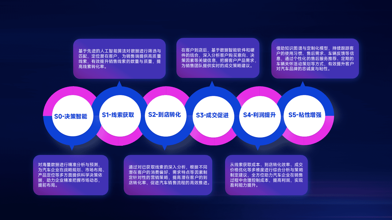 通过拓宽潜在客户来源、、、、优化线索分配并提高到店转化率,,,以增强销售效率。。。。同时,,,利用线索数据不断优化分析模型,,,,有效提升转化率,,,扩大营销影响力。。。。